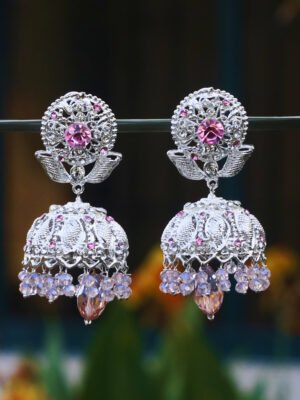 Pink Crystal Jhumka Earrings