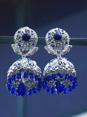 Royal Blue Crystal Jhumka Earrings